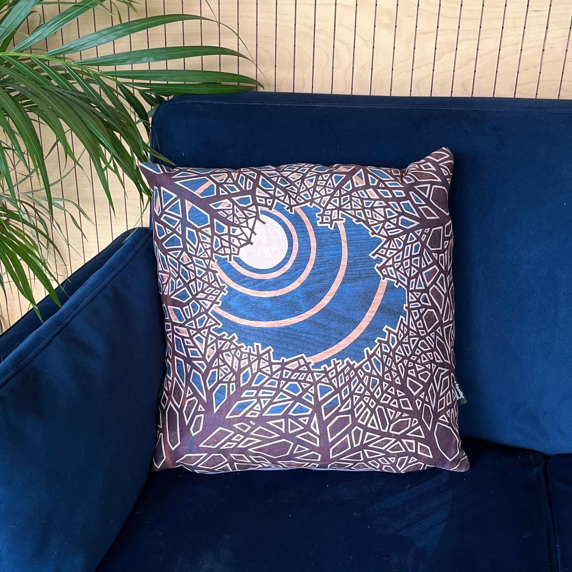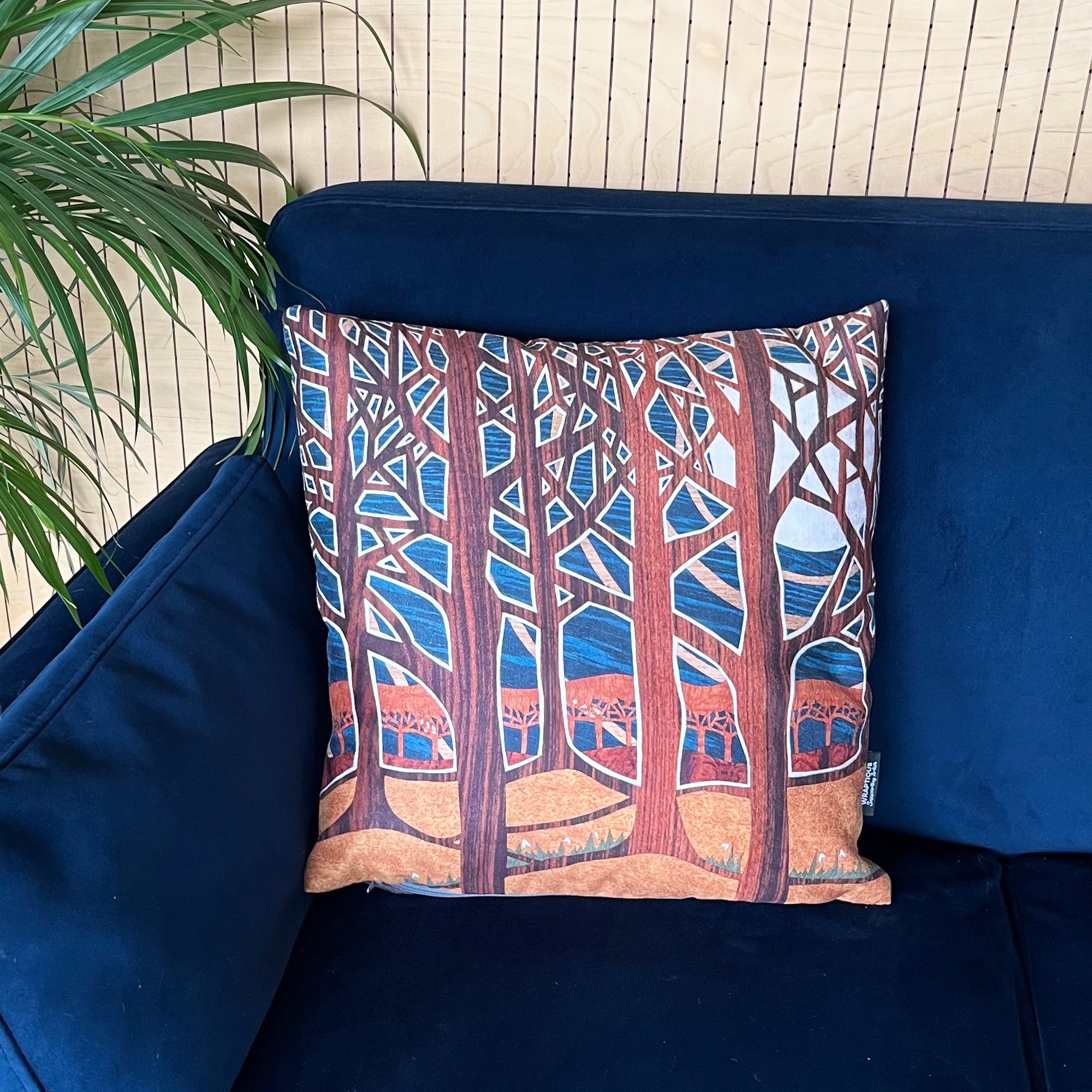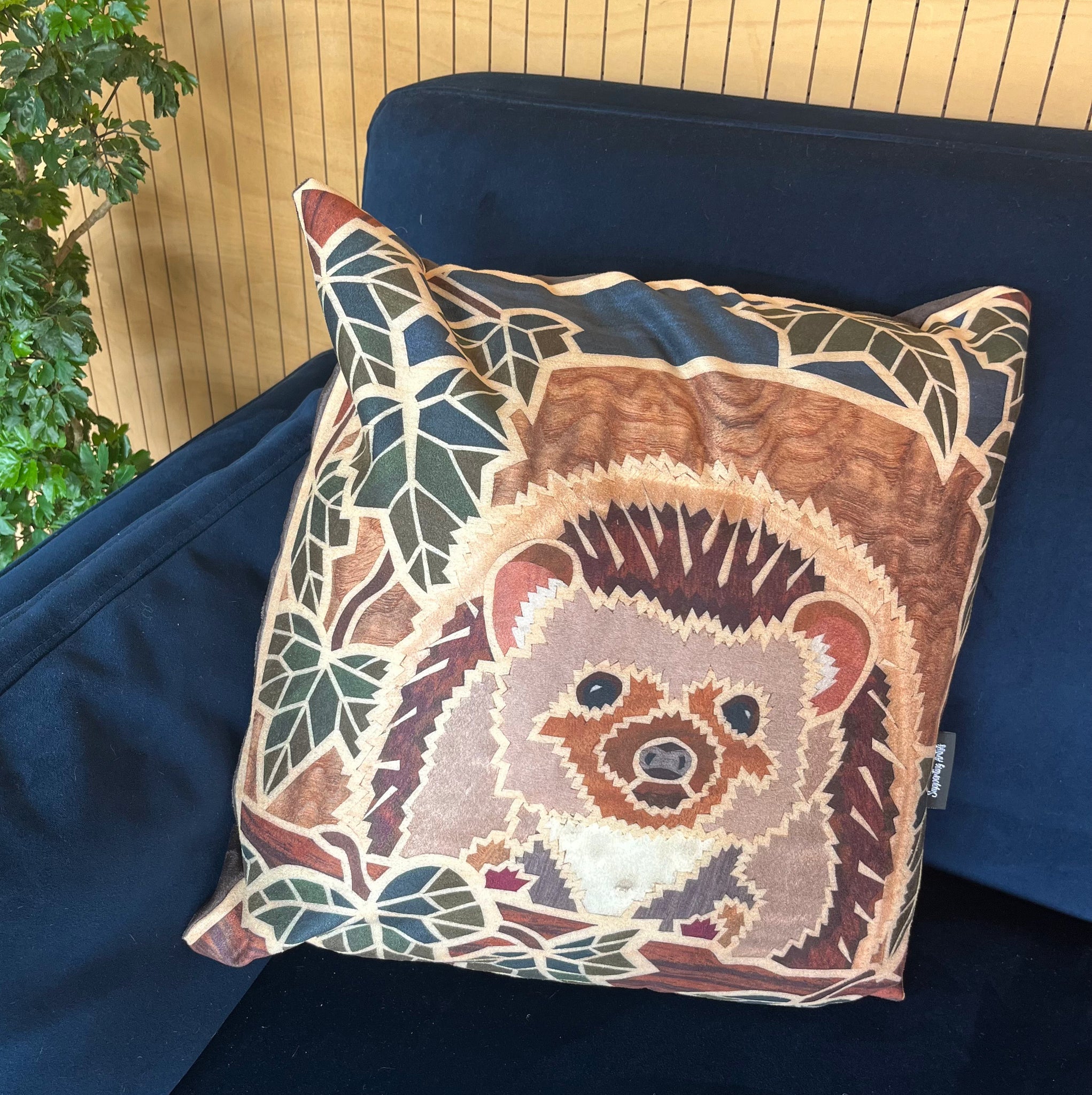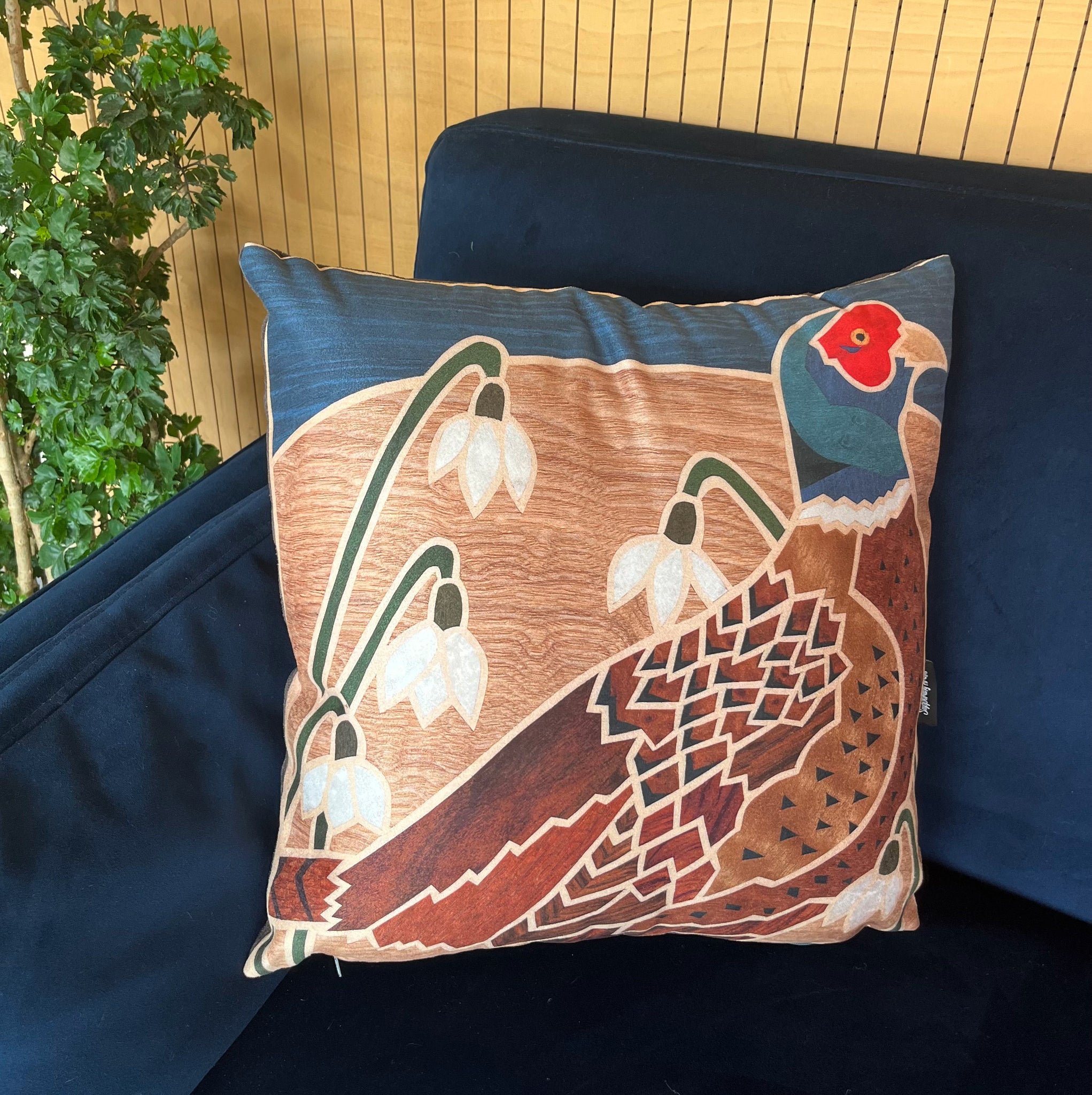 These lovely cushions are handmade in the UK and are made from soft vegan-suede, with Theresa's beautiful marquetry designs on the front and a charcoal reverse. Option to purchase with or without the plump fibre insert.